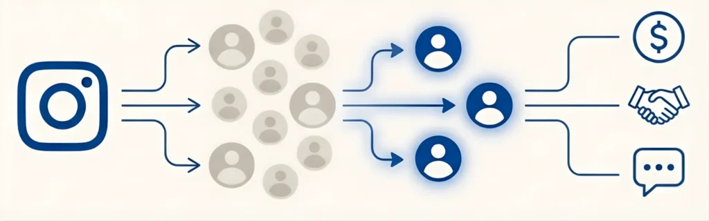 A ferramenta acessa o histórico de mensagens diretas do seu Instagram para identificar todos os contatos qualificados.